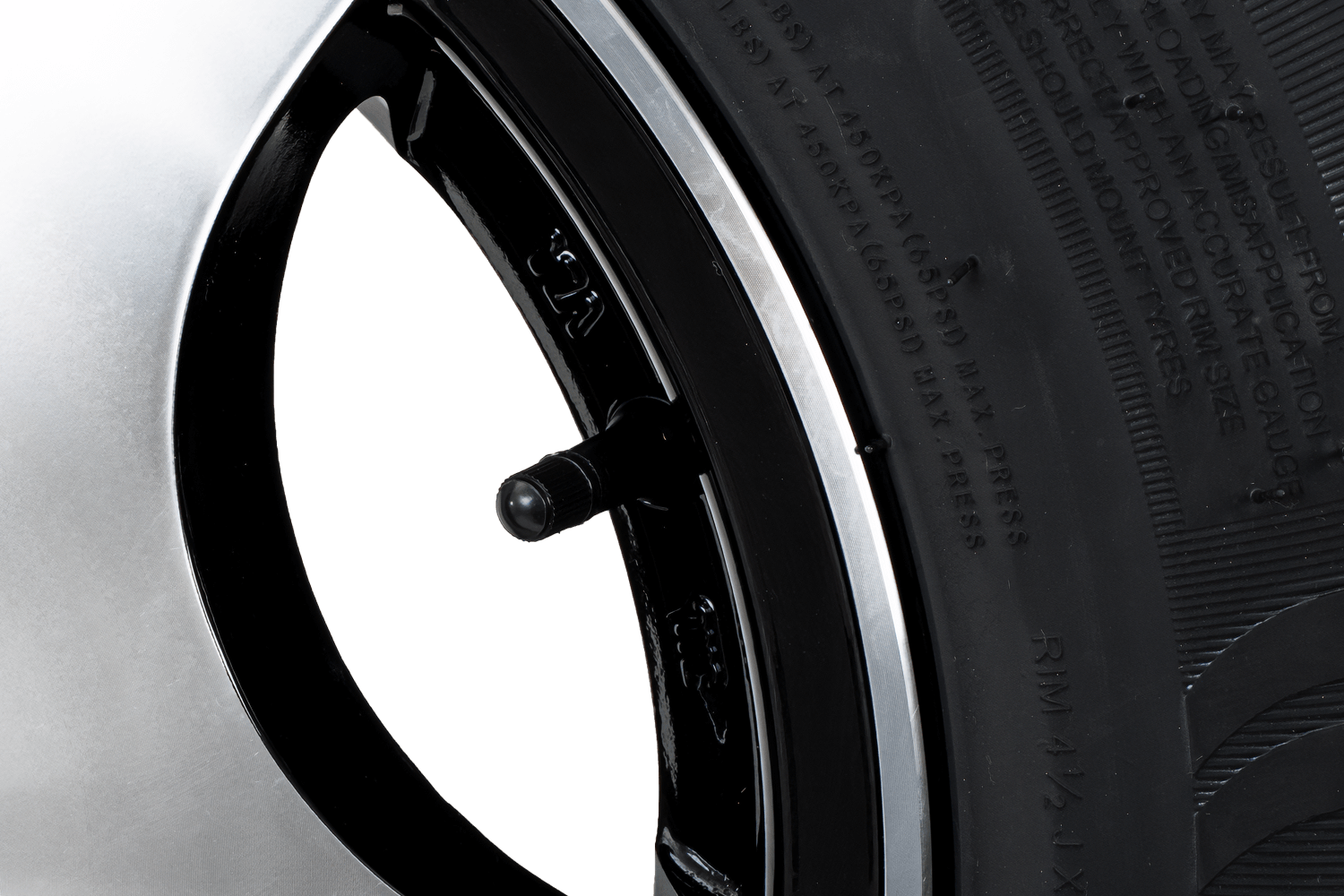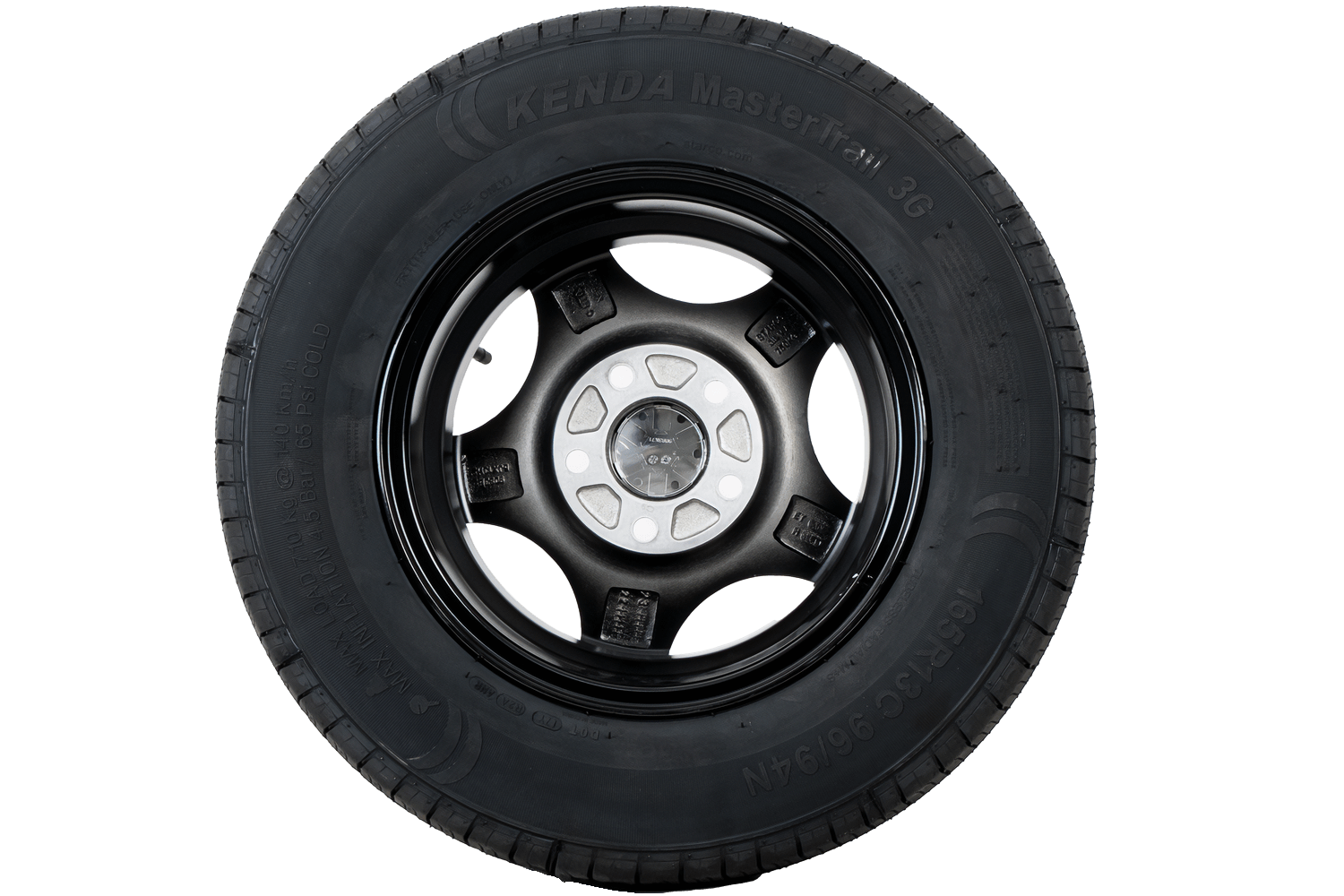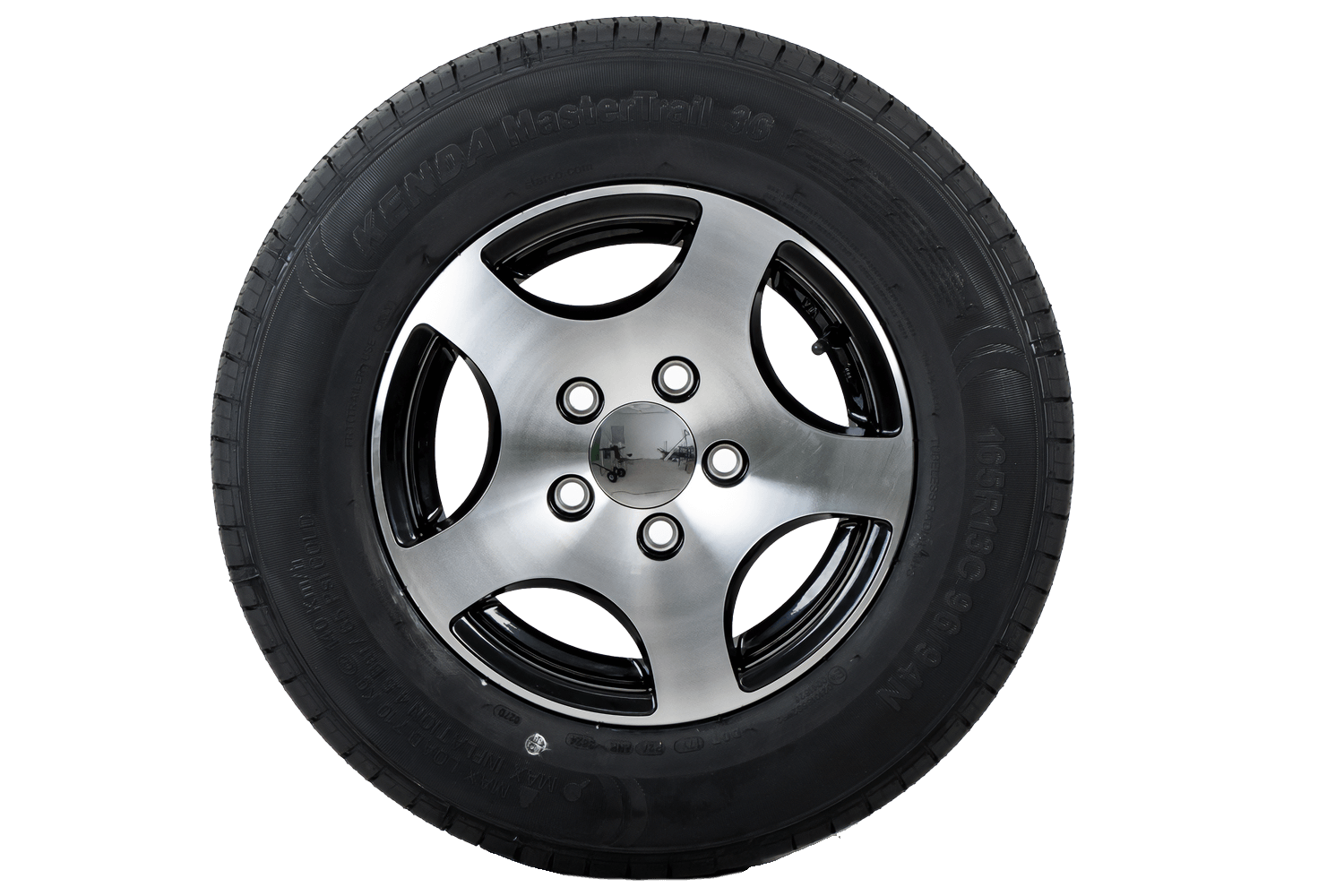 - Ruota rinforzata progettata per rimorchi pesanti. Pneumatico KENDA 165/80 R13C che garantisce sicurezza e stabilità durante la guida. Cerchio STARCO 5Jx13"H2 5x112 ET:30 in alluminio lucidato con finitura nera.
