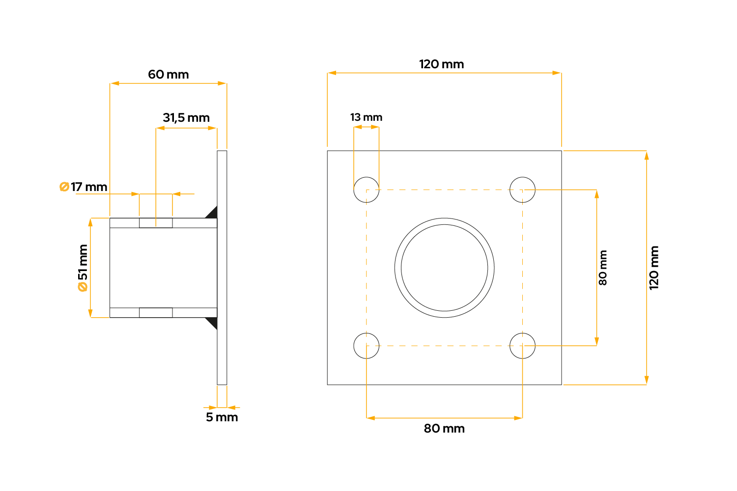 UNITRAILER TJ5002A adattatore supporto manovella, staffa per sollevatori TJ5001 e TJ5002
