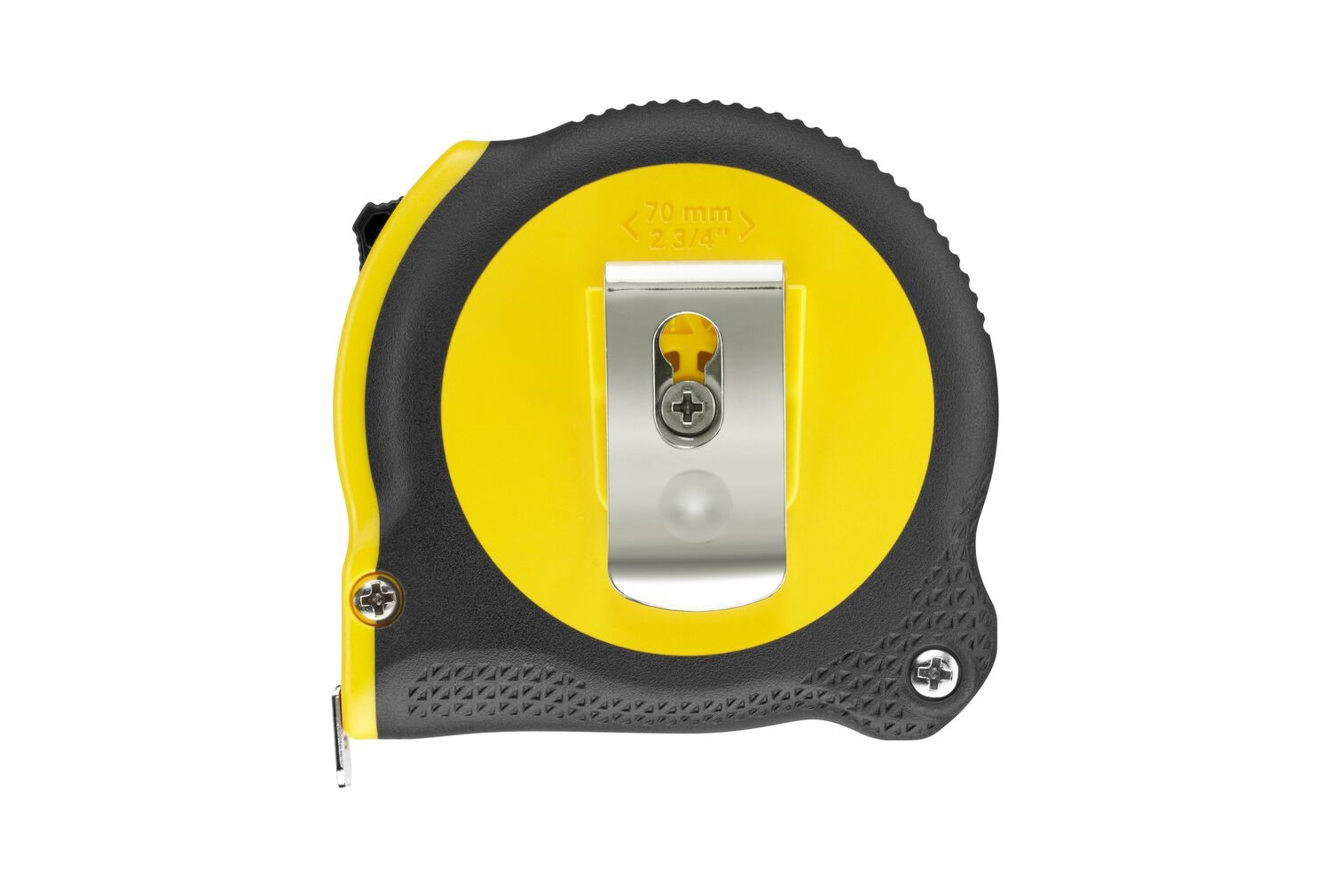 L'alloggiamento ergonomico in plastica si adatta bene alla mano e garantisce comfort d'uso anche durante lavori intensi. Il metro a nastro è dotato di un gancio che facilita le misurazioni da parte di una sola persona e di un fermo che stabilizza il metro durante la lettura . Questo utensile pratico e durevole si rivelerà utile sia in cantiere che nell'officina domestica.