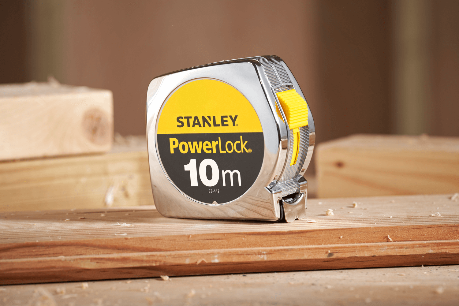 - Il metro a nastro STANLEY PowerLock da 10 m con larghezza del nastro di 25 mm è uno strumento resistente e preciso con un alloggiamento in ABS cromato e un nastro rivestito in MYLAR. Perfetto per professionisti e amanti del fai da te.