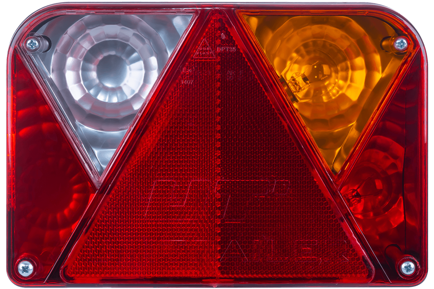 Funzioni della luce posteriore: luce di posizione , che garantisce la visibilità del veicolo durante la guida notturna; luce di stop , segnalazione di frenata; indicatore di direzione , che consente di indicare l'intenzione di svoltare ; fendinebbia , che aumentano la sicurezza in condizioni meteorologiche difficili, come nebbia o forti piogge ; illuminazione della targa , che garantisce la visibilità del numero di targa del veicolo di notte ; e un triangolo riflettente che aumenta la visibilità del veicolo .