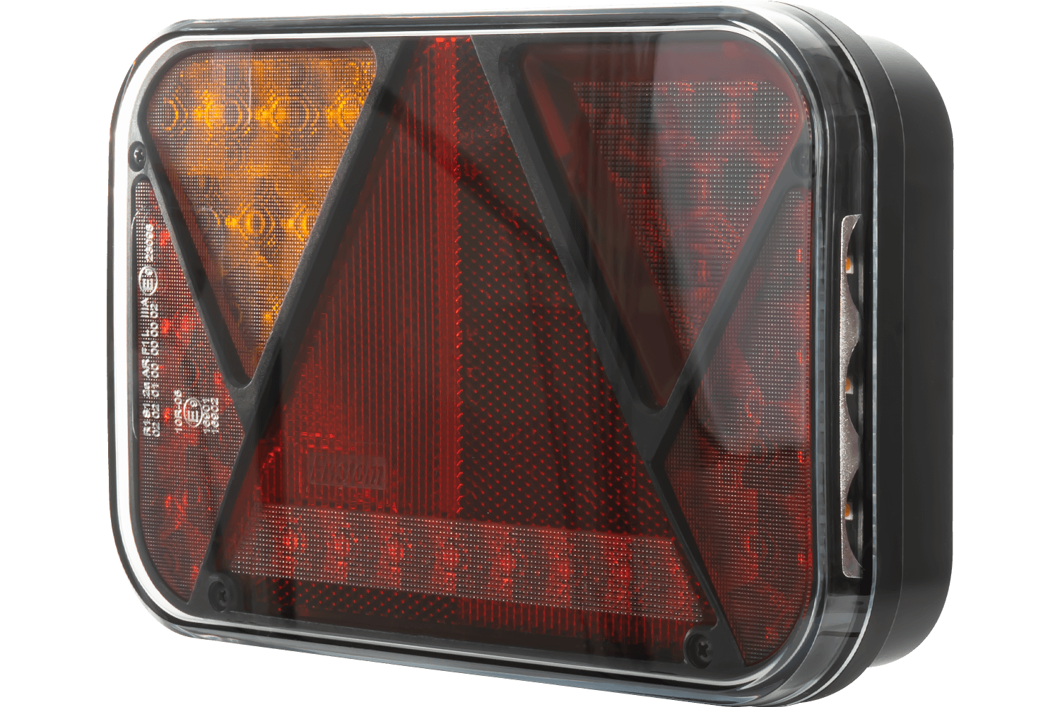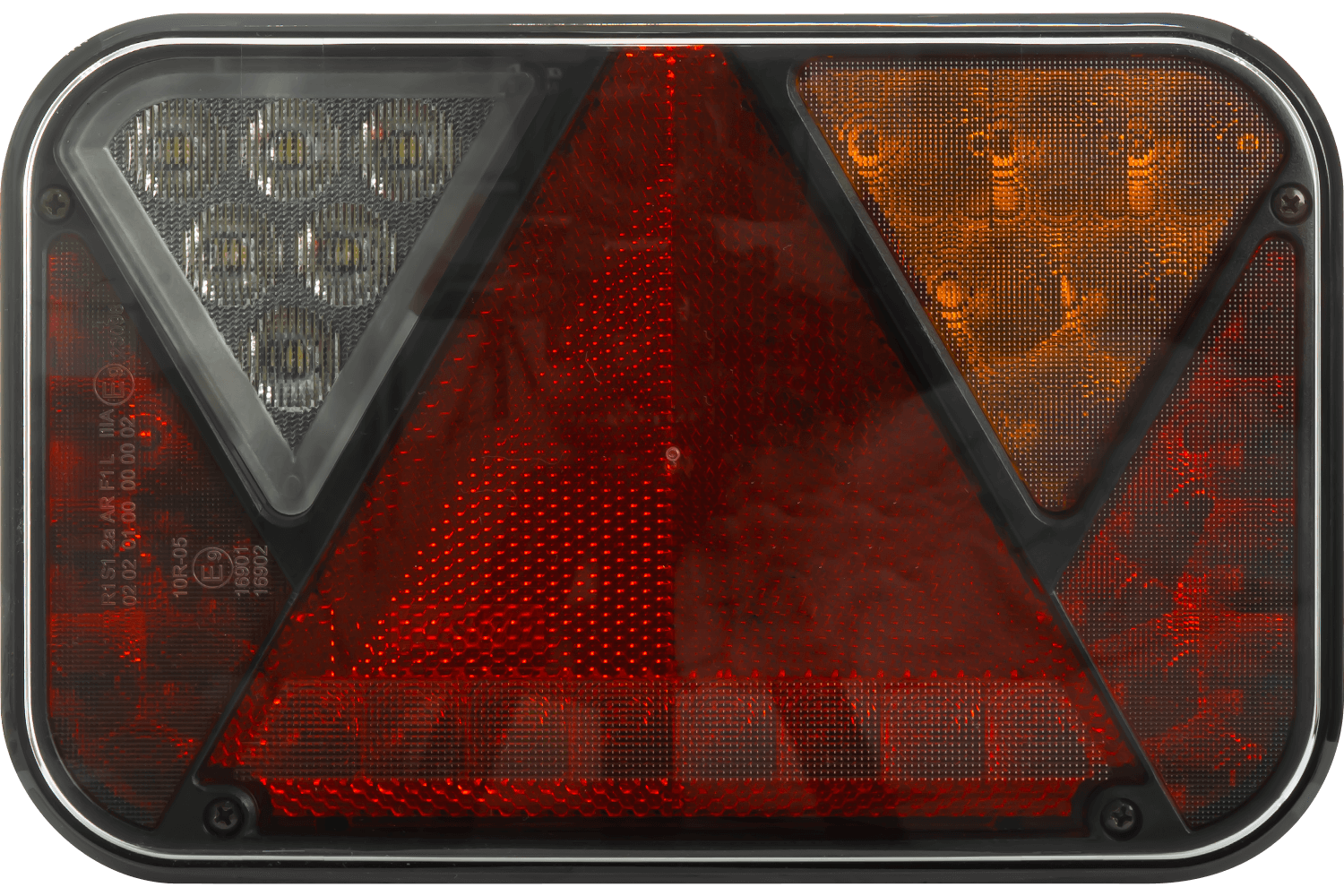 Funzioni della luce posteriore: luce di posizione , che garantisce la visibilità del veicolo durante la guida notturna; luce di stop , segnalazione di frenata; indicatore di direzione , che consente al conducente di indicare l'intenzione di svoltare ; luce di retromarcia (faro destro), che facilita le manovre di retromarcia migliorando la visibilità dietro il veicolo; fendinebbia (lampada sinistra) , che aumenta la sicurezza in condizioni meteorologiche difficili, come nebbia o forti piogge ; illuminazione della targa , che garantisce la visibilità del numero di targa del veicolo di notte ; e un triangolo riflettente che aumenta la visibilità del veicolo .