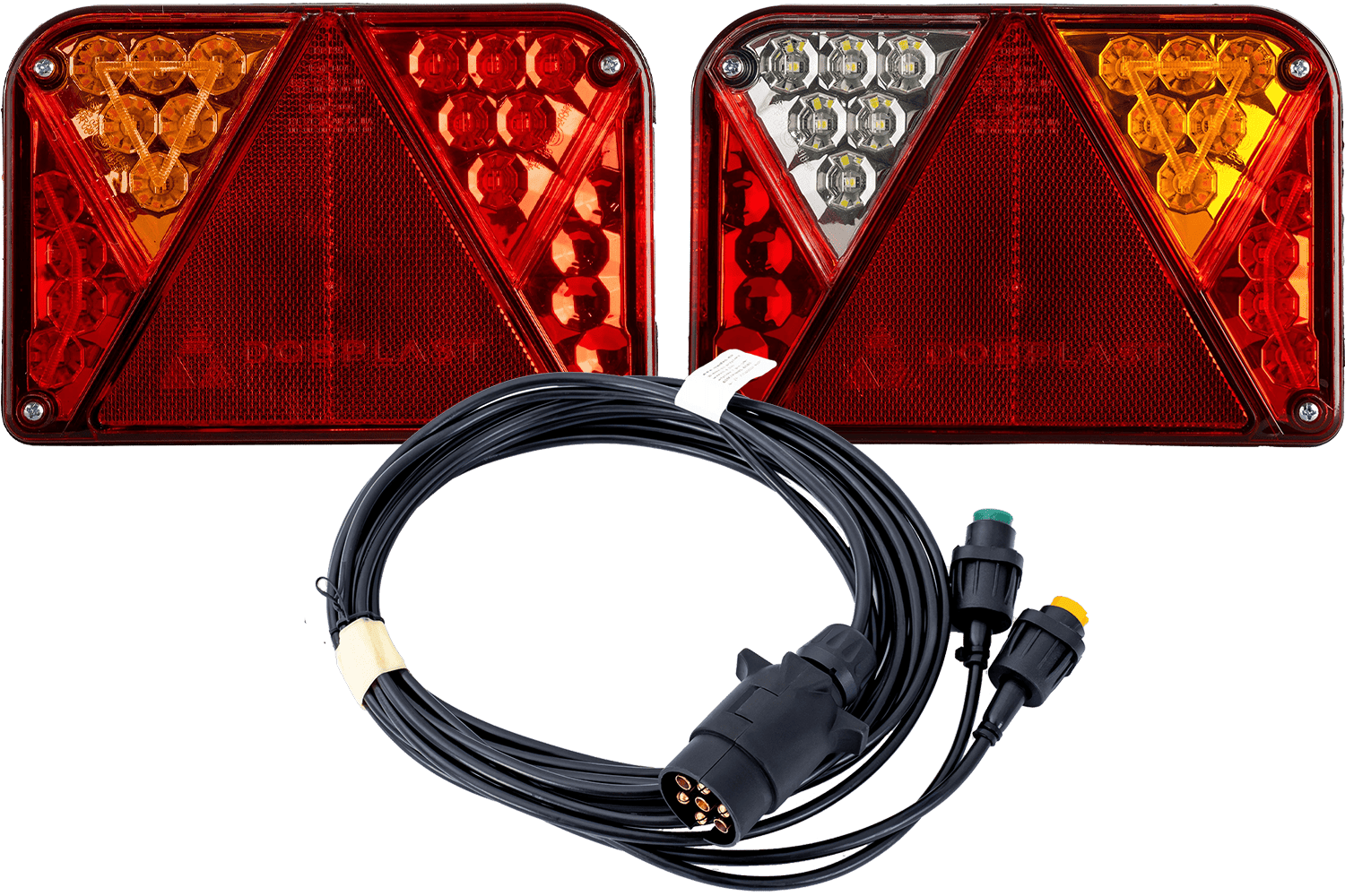 - Questo kit di illuminazione per rimorchi e pianali è una soluzione elettrica che migliora la visibilità e la sicurezza stradale. Il set è composto da luci posteriori a LED DOBPLAST DPT35 e da un cablaggio MANTES da 4 metri con spina a 7 poli.