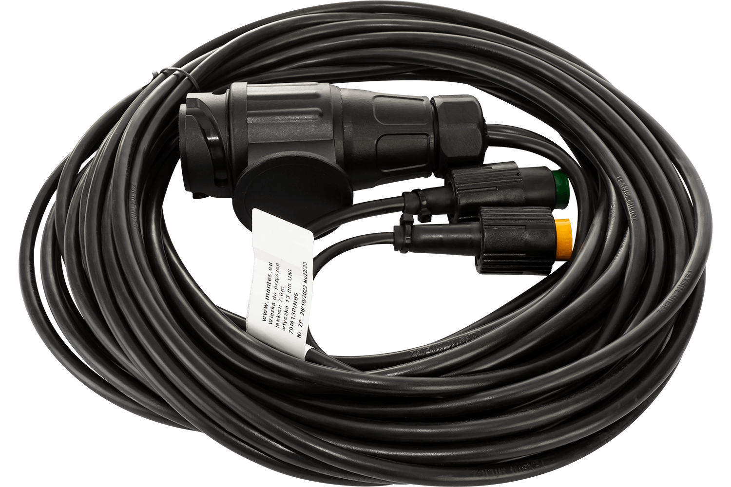 Impianto elettrico MANTES è una soluzione pratica e affidabile per i rimorchi per auto. Principale Cavo lungo 7 metri con sezione trasversale di 0,5 mm², dotato di un connettore standard Spina a 13 PIN , che garantisce una compatibilità universale con la maggior parte dei veicoli.