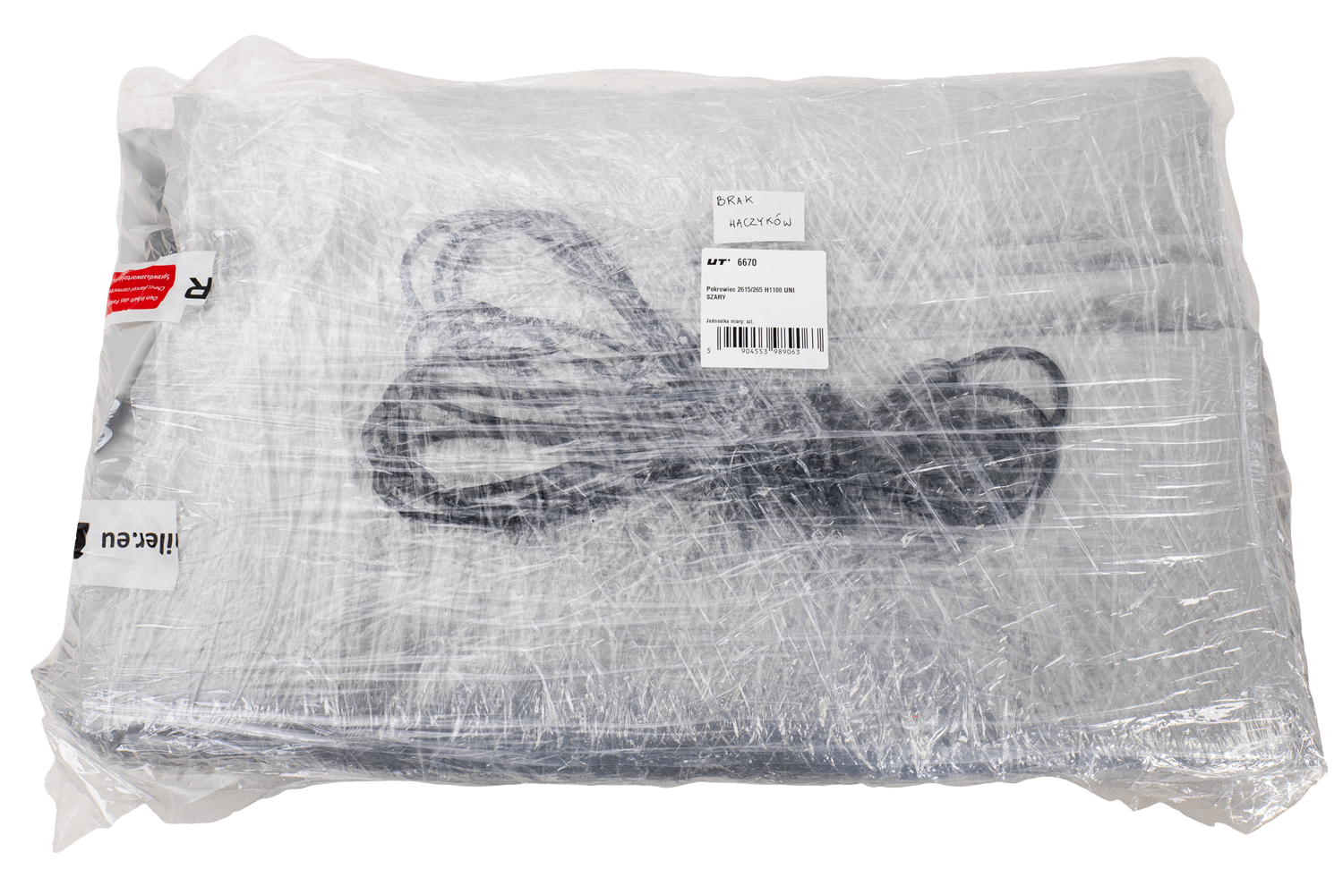 - OUTLET Telone grigio dedicato a un telaio alto 110 cm, progettato per rimorchi leggeri con una dimensione del vano di carico di 264 x 150. Si adatta perfettamente al rimorchio Unitrailer Garden 265 KIPP.