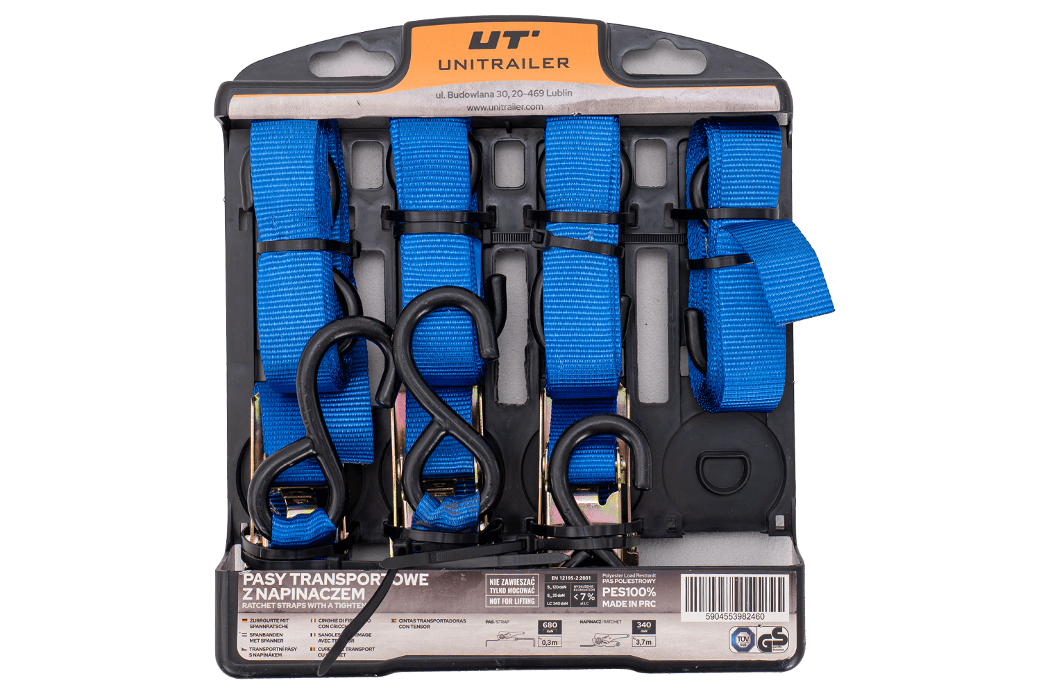 OUTLET Set di quattro cinghie di trasporto UNITRAILER con tenditore 4m/25mm/0,68t blu