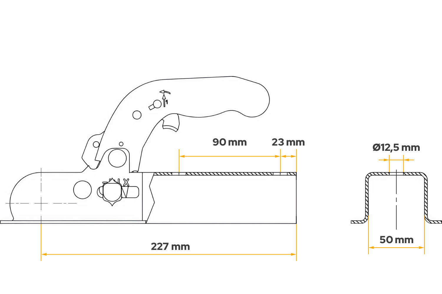 Il gancio a sfera K7.5-K di KNOTT è progettato per rimorchi con un peso totale massimo di 750 kg . Progettato per il montaggio su un timone quadrato da 50 mm , garantisce un collegamento stabile e sicuro al veicolo trainante. È caratterizzato da un carico verticale consentito di 75 kg , che assicura una distribuzione ottimale del carico tra il rimorchio e il veicolo, garantendo stabilità e sicurezza durante la guida. Il suo design consente un facile montaggio e smontaggio, aumentandone il comfort di utilizzo. Grazie alla sua lavorazione precisa e alla compatibilità con un'ampia gamma di rimorchi, questo gancio rappresenta una soluzione affidabile per gli utenti che danno valore alla qualità e alla sicurezza nel trasporto di carichi leggeri.