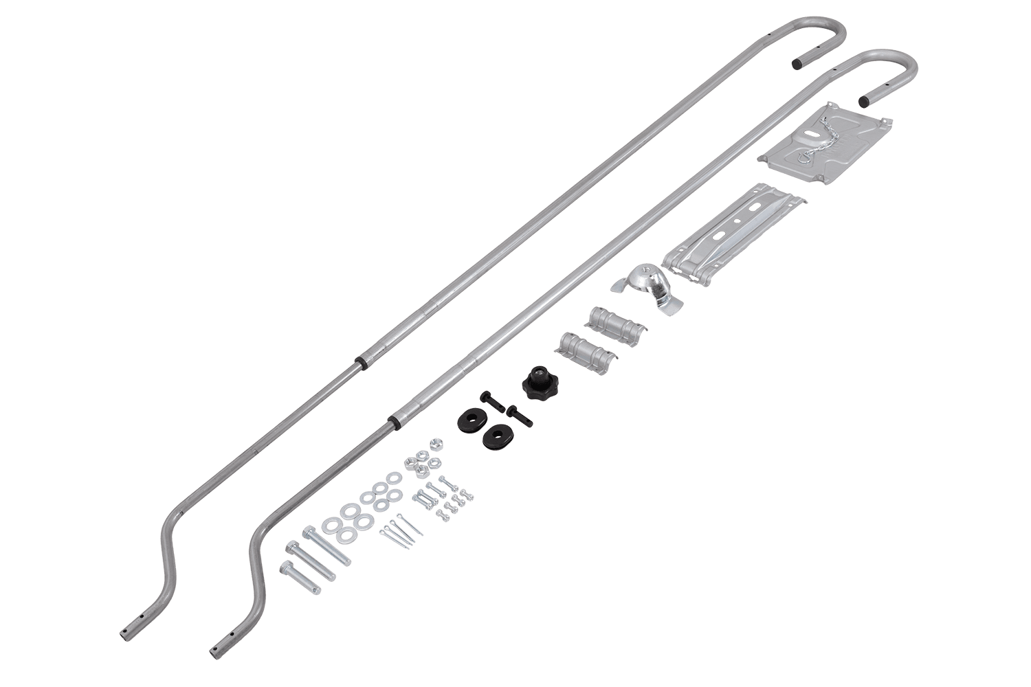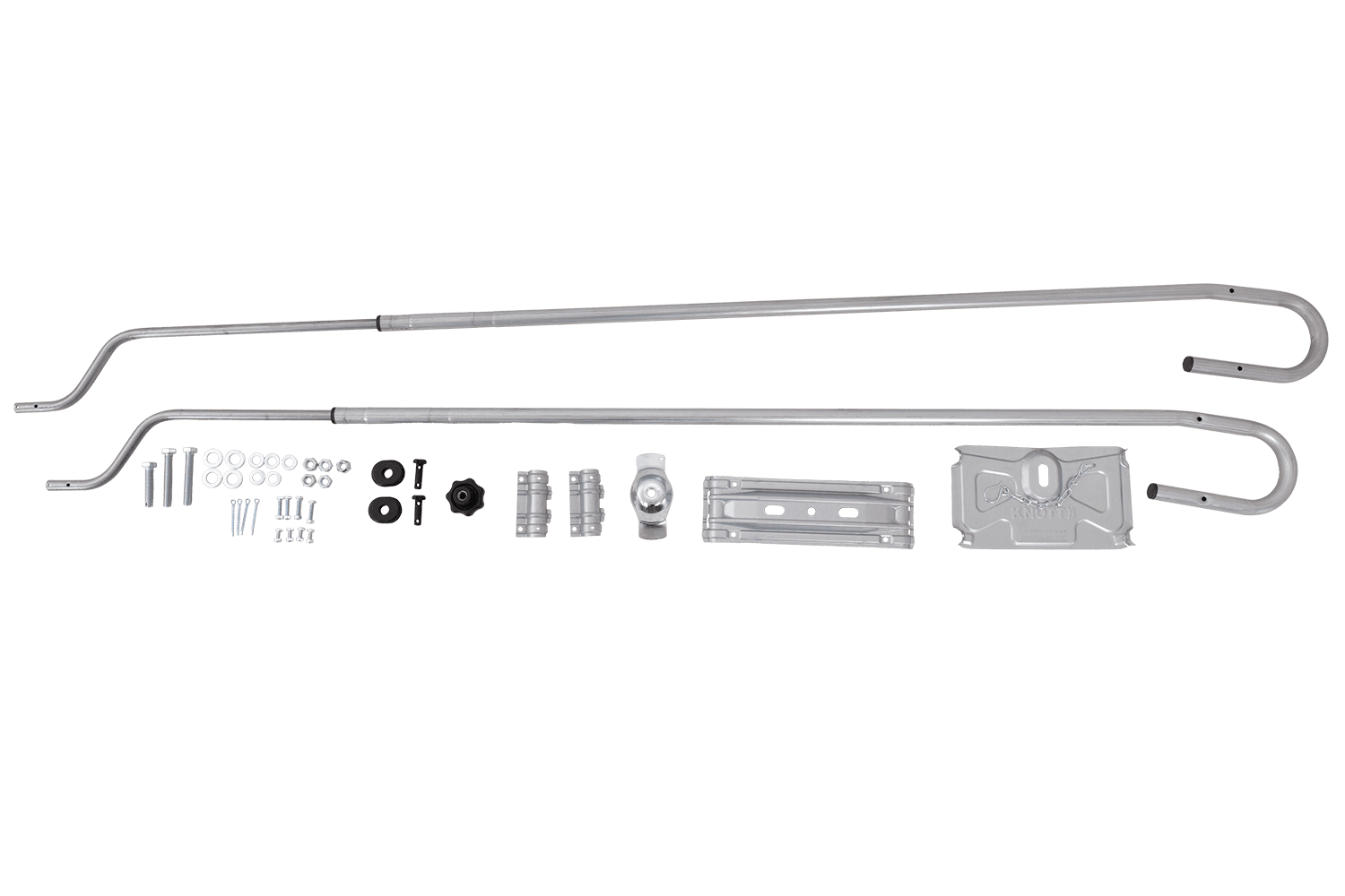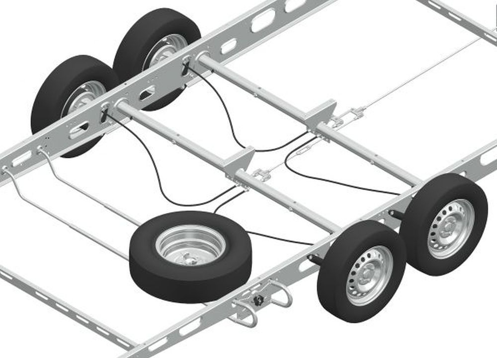 Il design della staffa è universalmente compatibile , consentendone l'installazione su tutti i telai da 1475 mm a 1850 mm di larghezza , indipendentemente dal produttore del rimorchio. Il meccanismo di regolazione è fluido e infinitamente variabile , consentendo un allineamento perfetto per uno specifico modello di veicolo. L'intera staffa è realizzata con tubi in acciaio resistenti alla corrosione con diametri di 16 mm e 25 mm, garantendo la massima durata, resistenza al carico e lunga durata anche in condizioni meteorologiche avverse.