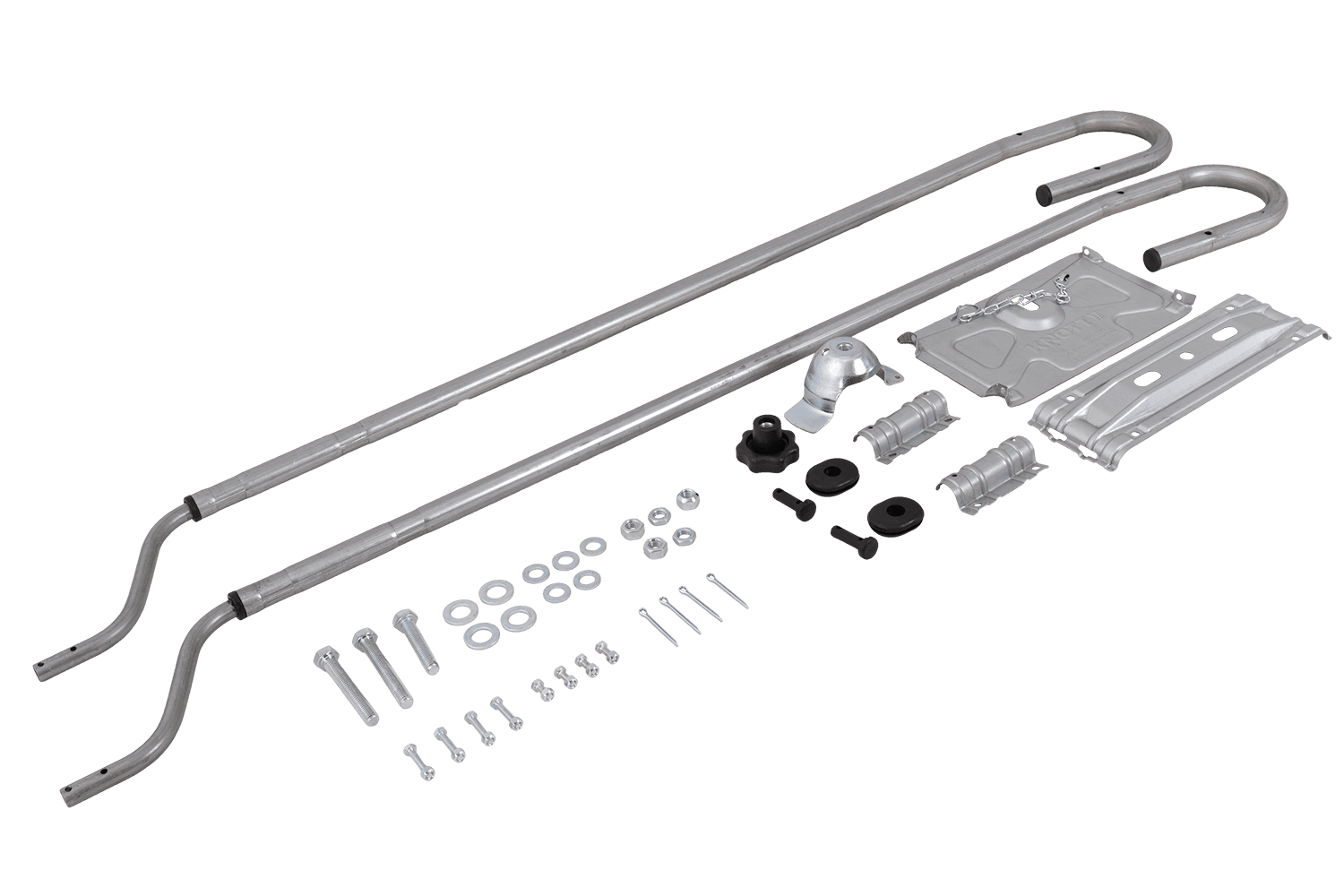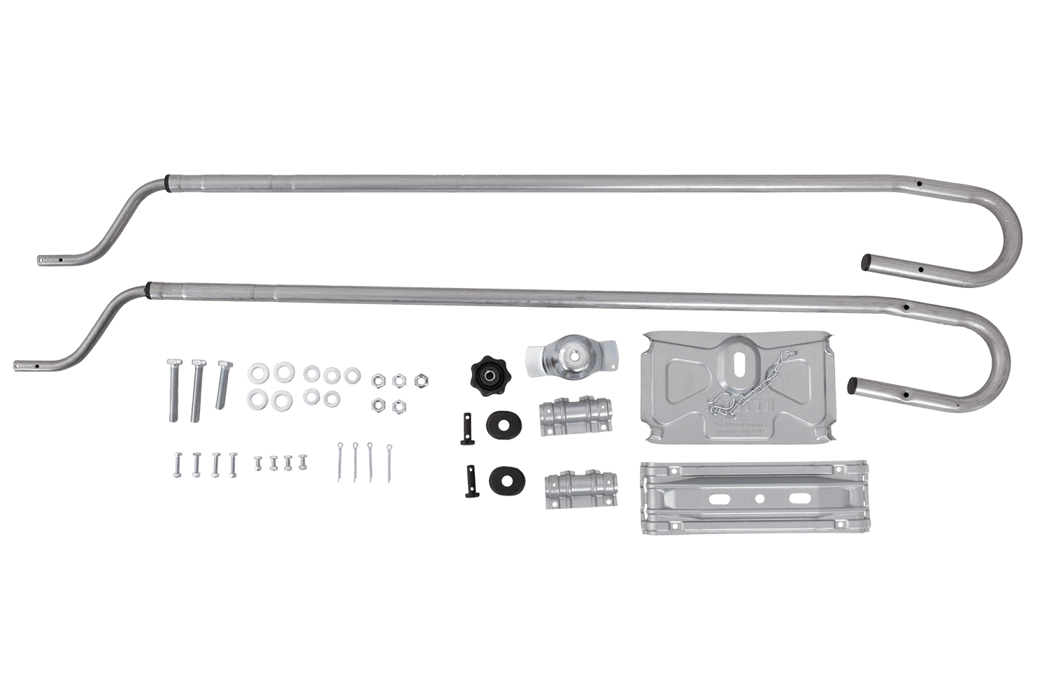 Il design della staffa è universalmente compatibile , consentendone l'installazione su tutti i telai da 1200 a 1500 mm di larghezza , indipendentemente dal produttore del rimorchio. Il meccanismo di regolazione è fluido e infinitamente variabile , consentendo un allineamento perfetto per uno specifico modello di veicolo. L'intera struttura è realizzata con tubi in acciaio resistenti alla corrosione con diametri di 16 mm e 25 mm, garantendo la massima durata, resistenza al carico e lunga durata anche in condizioni meteorologiche avverse.