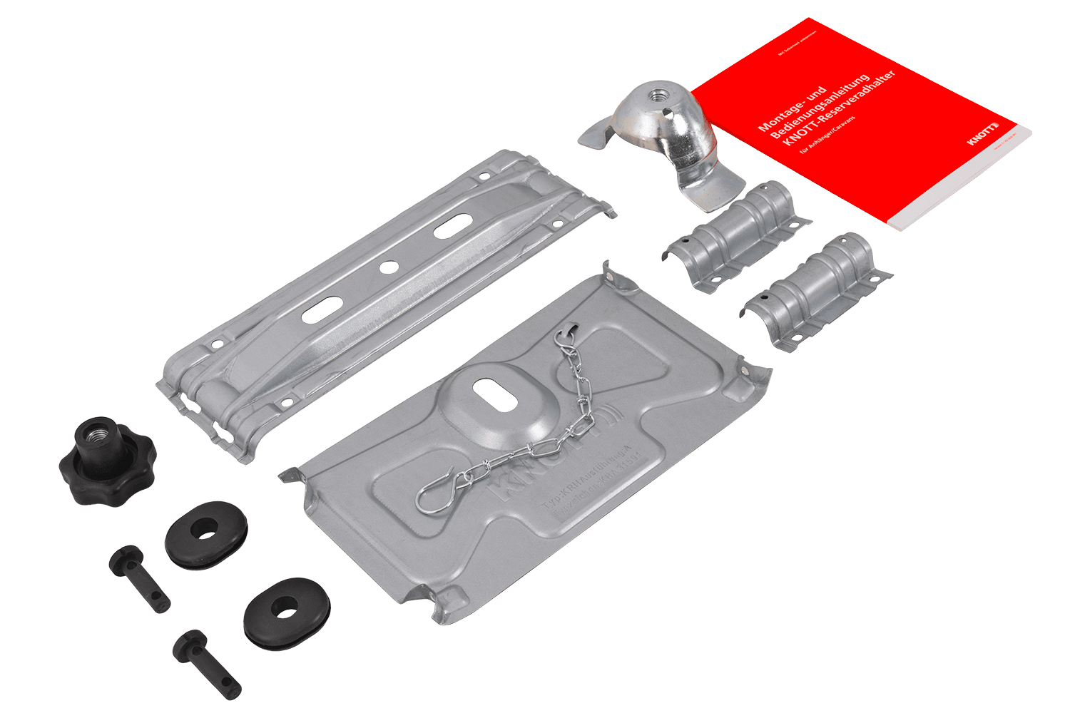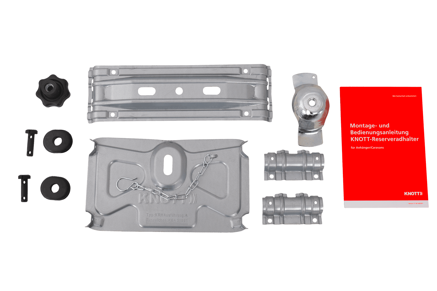 Il portaruota di scorta KNOTT 421241.002 è una soluzione versatile e funzionale, progettata per il montaggio sul sottoscocca. La ruota è fissata a una piastra speciale tramite un dado che sfrutta il foro centrale del cerchio , garantendo un allineamento preciso e un fissaggio sicuro durante la guida. In caso di emergenza su strada, la ruota di scorta può essere facilmente sfilata dal portaruota e rimossa rapidamente, riducendo significativamente i tempi di sostituzione e semplificando l'intera procedura.