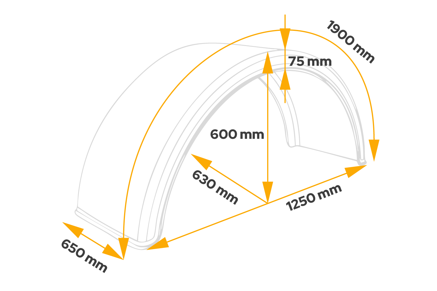 Parafango doppio per rimorchio 19,5-22,5" DOMAR DK1670 passaruota 1280/650mm
