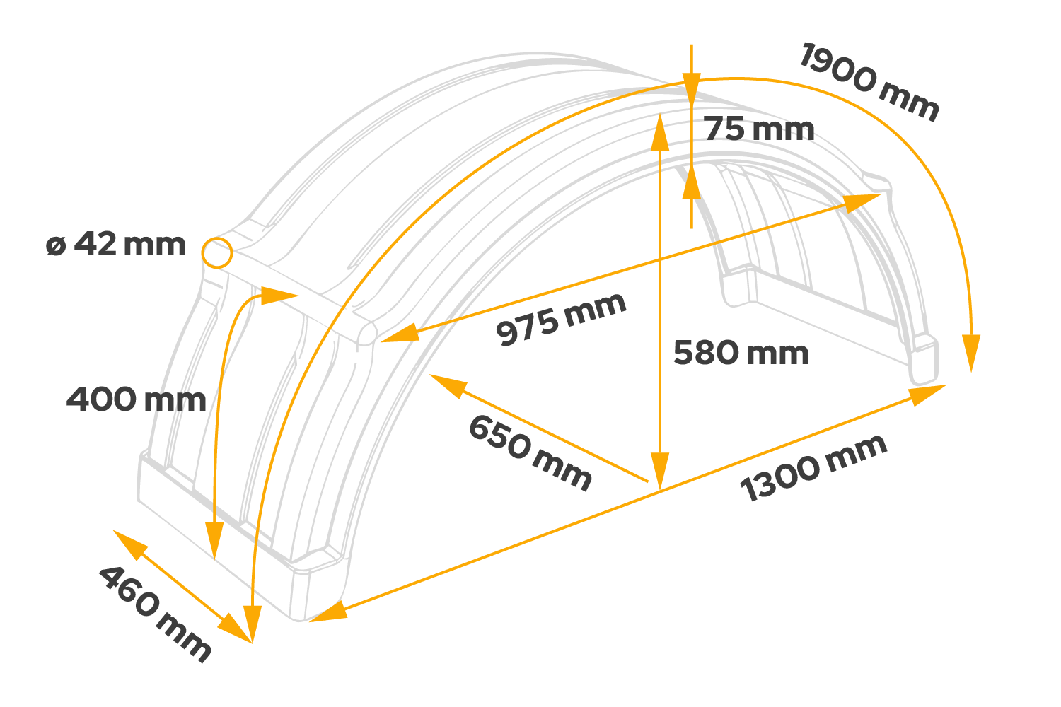 Parafango rimorchio 19,5-24,5" DOMAR DK4175 passaruota 1300/460mm per montaggio rapido