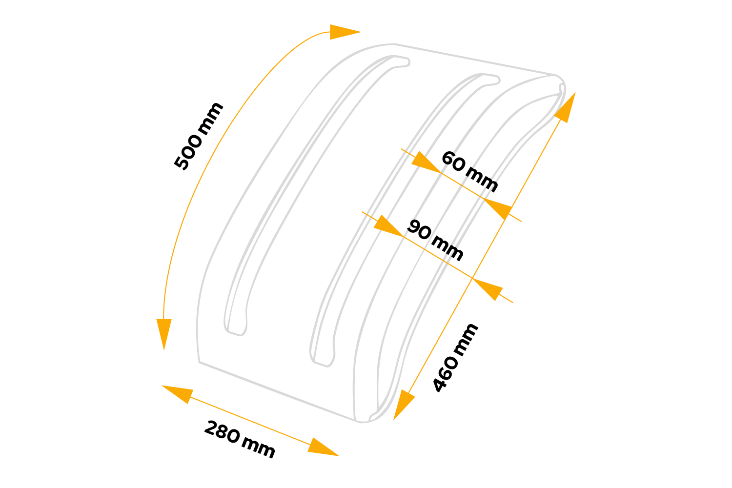 Il semiparafango D10228 di DOMAR è un elemento compatto e robusto progettato per proteggere le ruote di rimorchi, semirimorchi, macchine agricole ed edili e altri veicoli che operano in condizioni impegnative. Grazie alle sue dimensioni - lunghezza 460 mm, larghezza 280 mm e altezza 90 mm - è ideale dove è necessaria un'efficace protezione da acqua, fango e pietre sotto le ruote, risparmiando spazio e garantendo un facile accesso agli elementi di guida. Non presenta fori di montaggio di fabbrica , il che consente all'utente di adattare liberamente i punti di montaggio alla struttura specifica del veicolo .
