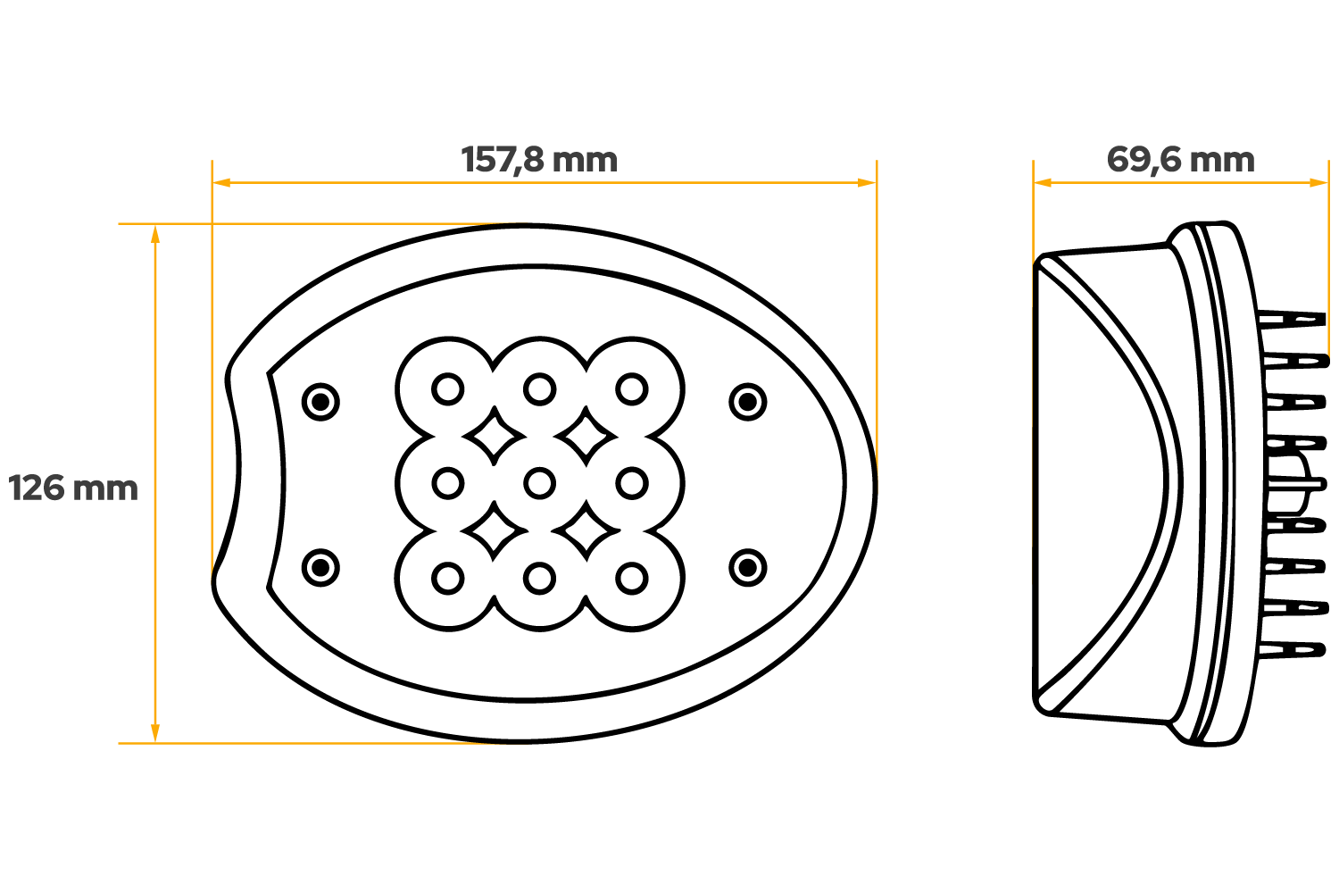 Le lampade sono dotate di 9 diodi OSRAM con una potenza di 45 W e una luminosità di 3600 lumen ciascuno. Emettono una luce bianca neutra con una temperatura di 5700 K , garantendo un'ottima visibilità notturna e quando si lavora in condizioni di scarsa visibilità. La lente diffusa illumina in modo uniforme l'area di lavoro ed è ideale sia per lavori di precisione che per l'illuminazione di aree estese.