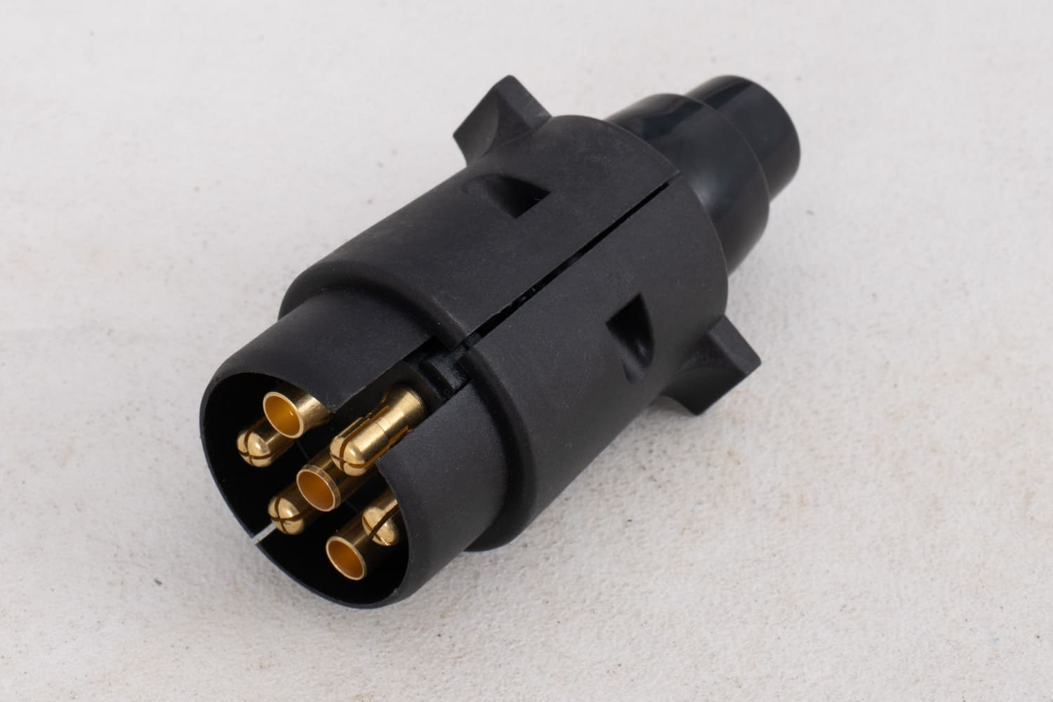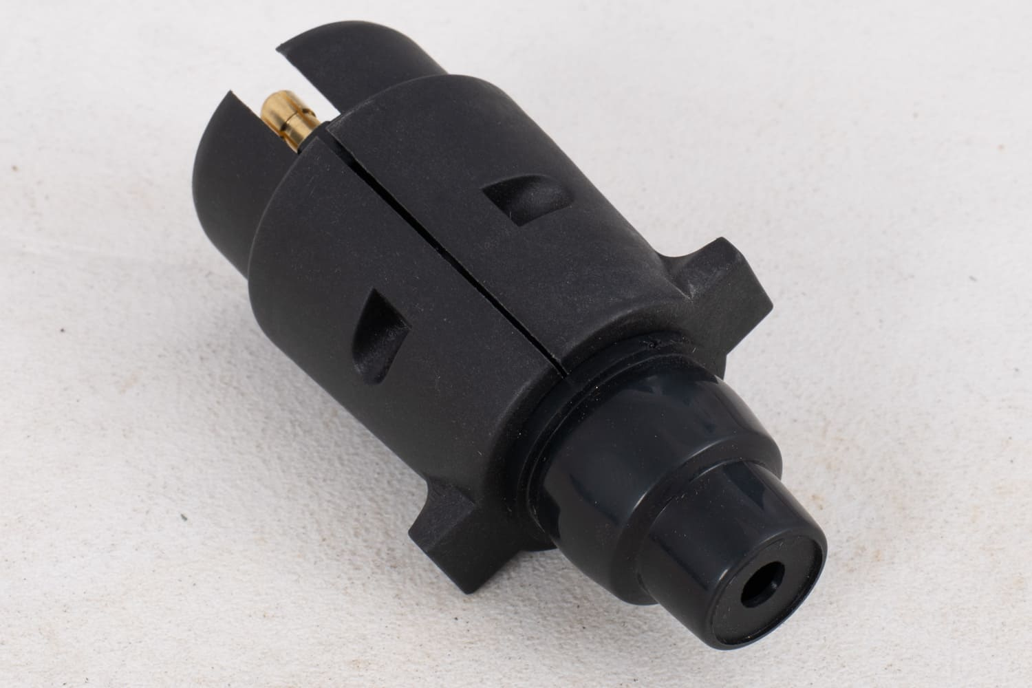 Questa spina per rimorchio a 7 pin presenta sporgenze aggiuntive, testurizzate e sagomate sull'alloggiamento, che consentono una presa migliore e un collegamento più semplice del rimorchio al veicolo. È comune che la spina del rimorchio non si colleghi al primo tentativo, richiedendo manovre per ottenere il corretto orientamento. Questa spina semplifica notevolmente il collegamento.