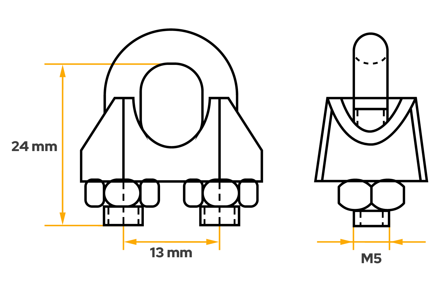 - Il morsetto ad arco ZL.6 DROMET ha una filettatura M5 e un'altezza di 28 mm ed è progettato per serrare cavi in acciaio con un diametro di 6 mm. Viene utilizzato per collegare in sicurezza cavi in acciaio, formare anelli e immobilizzarli.