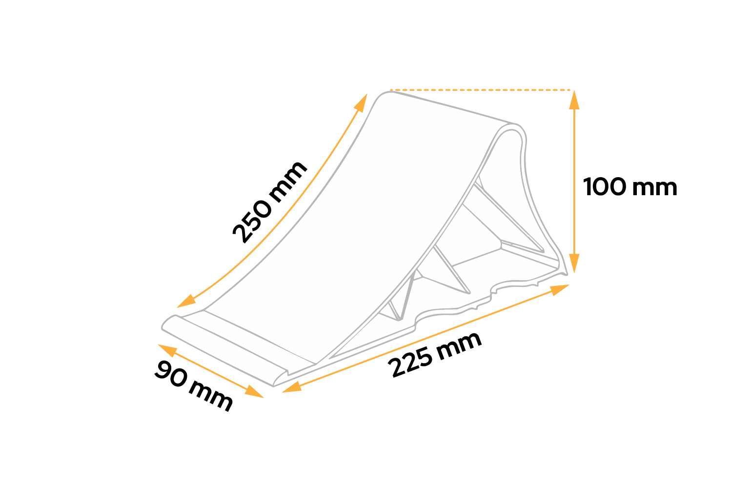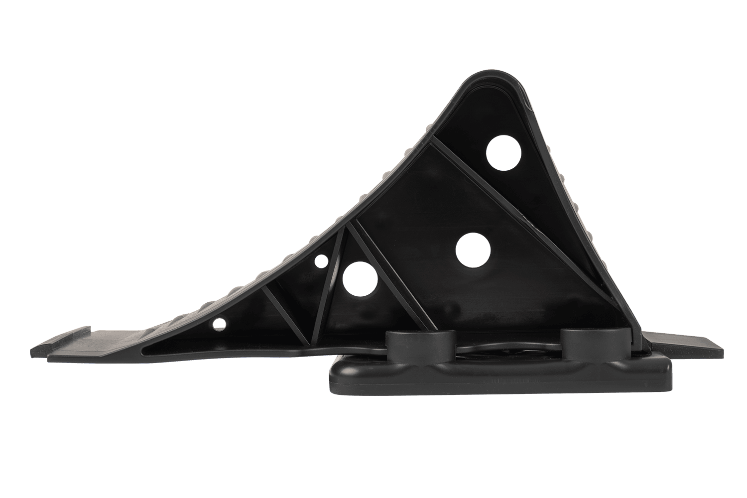 Realizzato in polipropilene nero di alta qualità , il cuneo è notevolmente più leggero dei tradizionali cunei metallici , il che lo rende più facile da maneggiare e trasportare. Grazie alla sua struttura robusta e al profilo raffinato, il cuneo garantisce un immobilizzazione affidabile del veicolo anche su terreni difficili. La sua forma ergonomica e le dimensioni compatte lo rendono facile da usare e trasportare.
