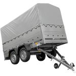 Rimorchio per auto a 2 assi UNITRAILER GARDEN TRAILER 264/2 KIPP con ruota di supporto, sponde bis, telaio h-800 e telo grigio
