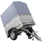 Rimorchio Garden Trailer 230 KIPP con ruotino di appoggio, sovrasponde e centina H-800 con telo blu